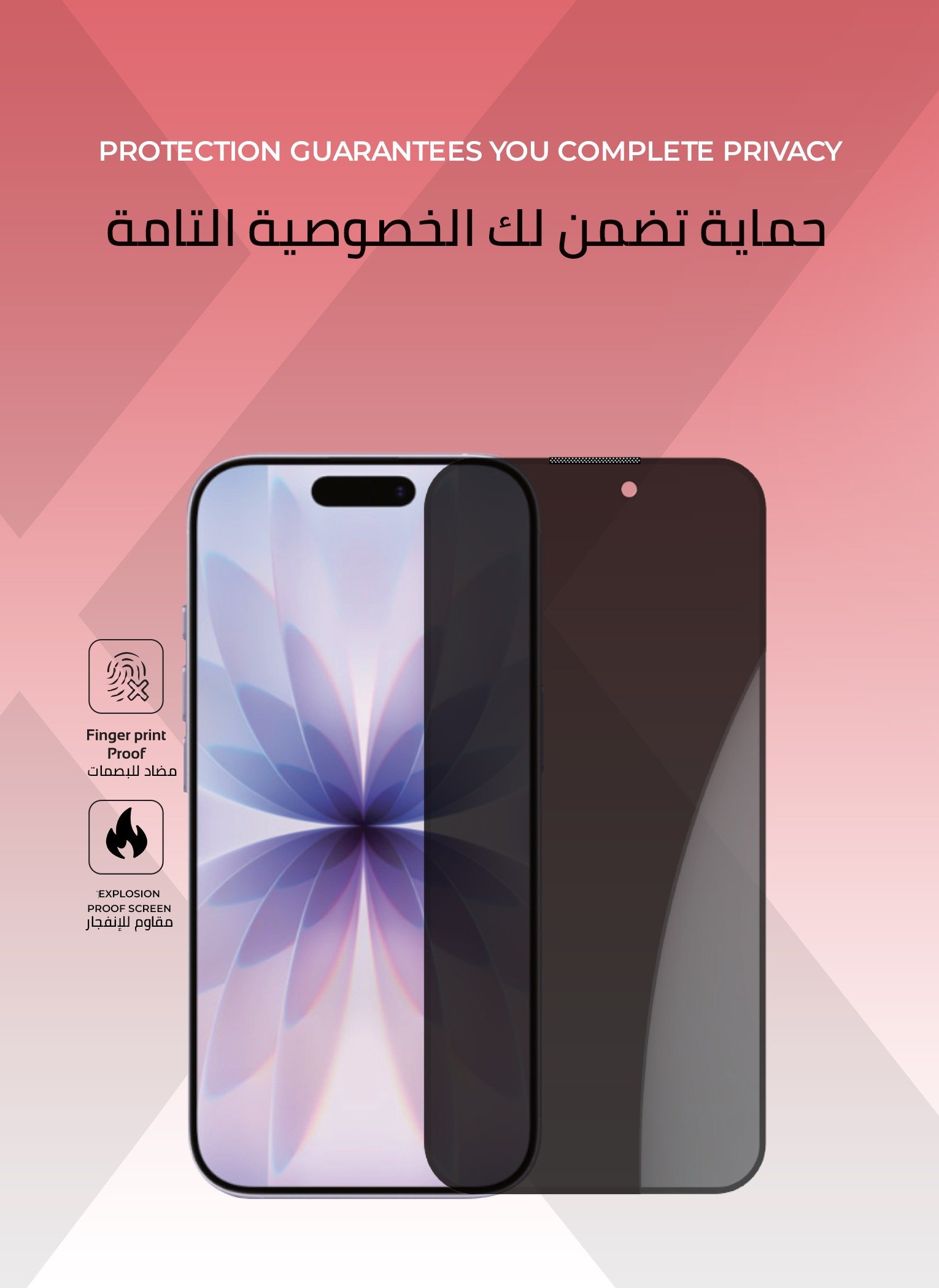 • طقم حماية متكامل (غطاء خلفي + واقي شاشة Privacy + حماية للكاميرا).